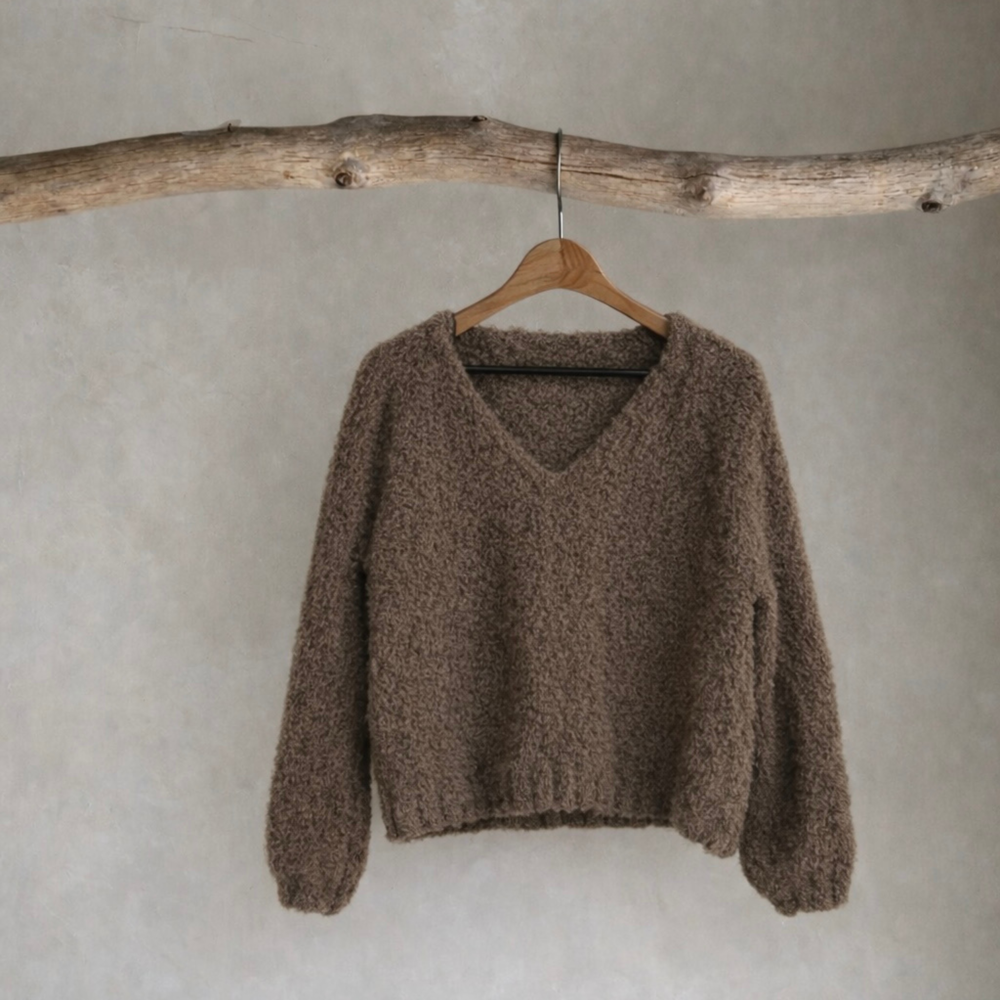 Megztukas numegztas rankomis iš 80% alpaka ir 20% vilnos siūlų. Kiekvienas siūlelis pripildytas šilumos, jaukumo bei didžiausios meilės.