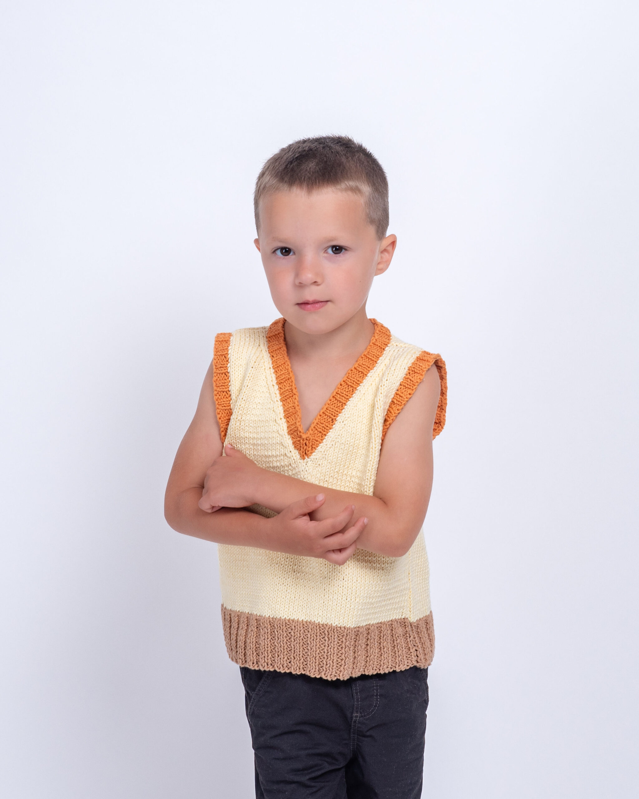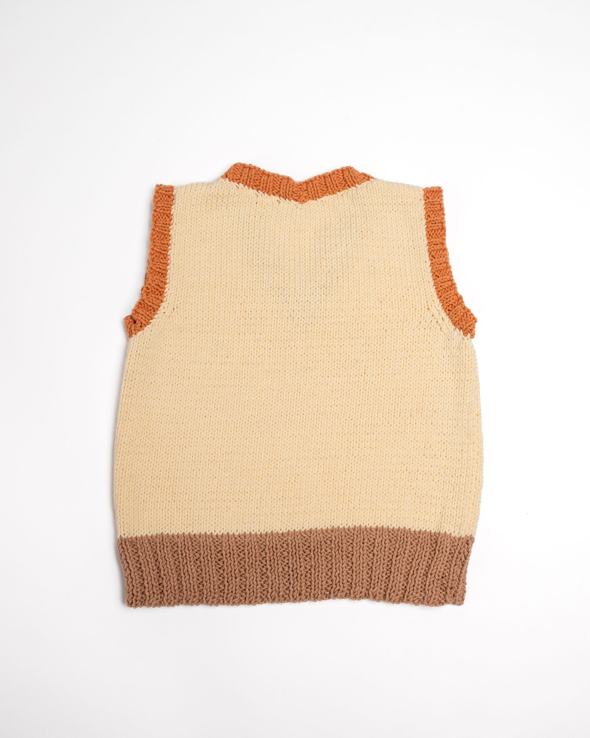 Rankų darbo liemenė. Švelni ir minkšta medvilnė. Ryškios spalvos. Žaismingas dizainas.