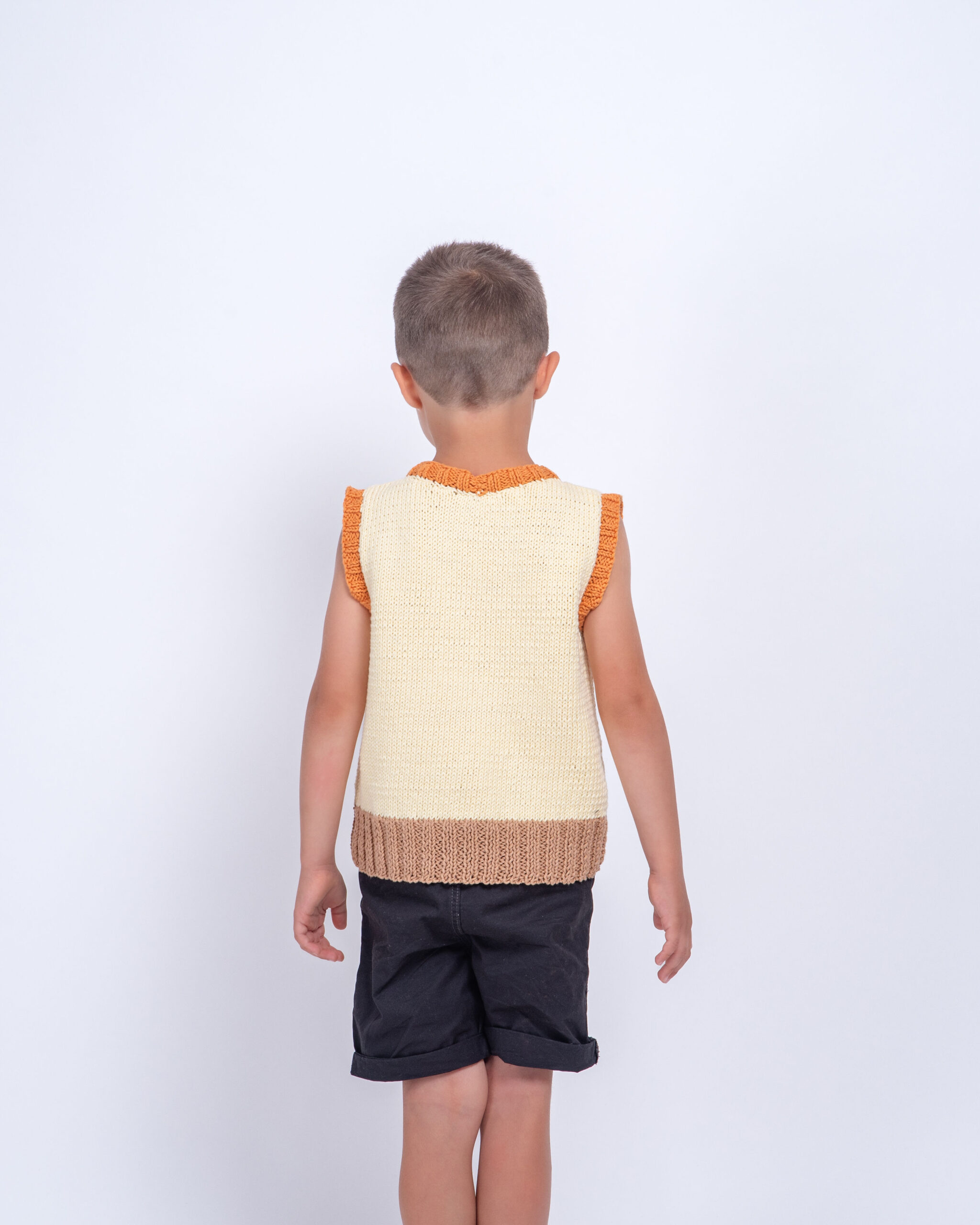 100% medvilnės siūlai. Rankų darbo liemenė. Švelni ir minkšta medvilnė. Ryškios spalvos. Žaismingas dizainas.
