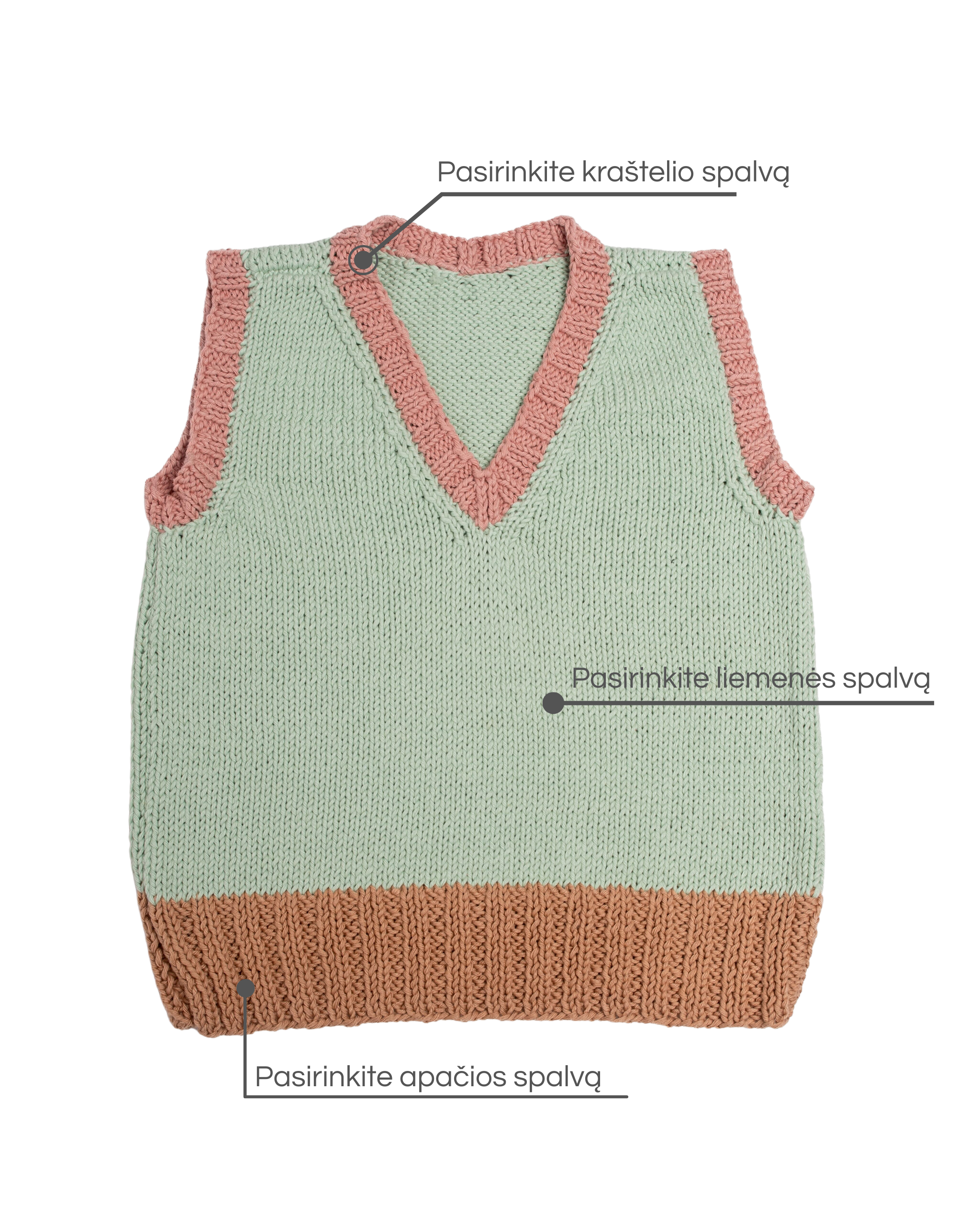 100% medvilnės siūlai. Rankų darbo liemenė. Švelni ir minkšta medvilnė.